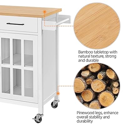 Rolling Kitchen Island Cart White Icons On Transparent : Buy Yaheetech Kitchen Cart W Bamboo Top Rolling Kitchen Island With Open Storage Shelf Wide Drawer Towel Rack And Tempered Glass Storage Cabinet Door 36 H White Online In Hungary B08qf4y9sv : Perfect for smaller kitchens or kitchens that need more options for it gives me the work space i need, but when i want to pull the table out for the grand kids, it moves to the side easily.
